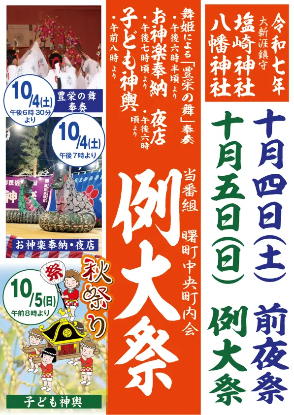 【塩崎神社 10/4㈯前夜祭・10/5㈰秋の例大祭について】
