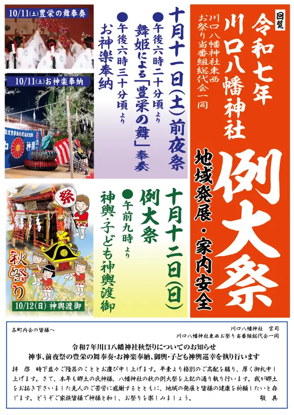 またお祭りでは神さまと人が和し、ともに楽しむ時でもあります。ご家族皆様でどうぞご参詣ください。