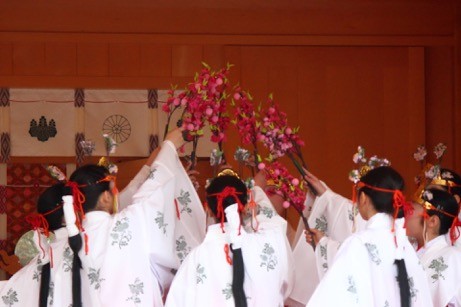 また、神も人と一緒に祭りを楽しむと考えられたため、神をもてなすために音楽や踊りを披露するようになり、それが前夜祭(お祭りの前日の夜)のお神楽などの奉納歌舞です。